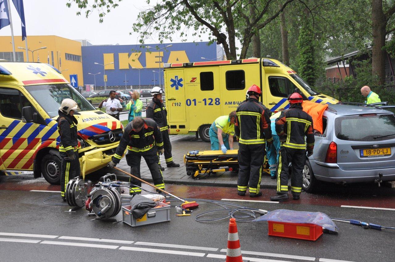 Het ambulancepersoneel bleef ongedeerd, maar de bestuurder van de auto moest door de brandweer uit zijn wagen bevrijd worden. Hij is met nekklachten overgebracht naar het ziekenhuis. Een passagier die achter in de auto zat, kwam er zonder kleerscheuren van af. Beide voertuigen zijn weggesleept door een bergingsbedrijf. Een andere ambulance heeft de melding op de A28 overgenomen.