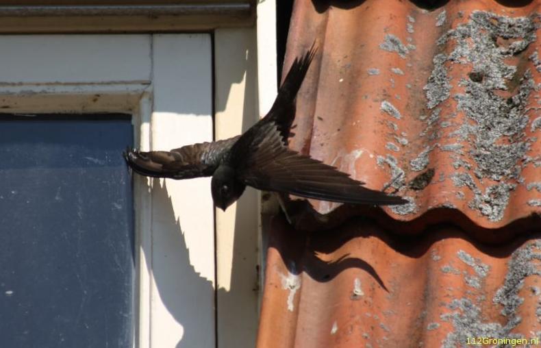 Het dier was door onbekende oorzaak vast komen te zitten bij een dakraam. De vogel werd opgemerkt door de bewoonster van het pand die daarop de hulpdiensten alarmeerde. De Groninger brandweer kwam ter plaatse met een hoogwerker. Met hulp van de brandweerlieden kon de eigenaresse de vogel bevrijden door via het raam het dier te pakken.