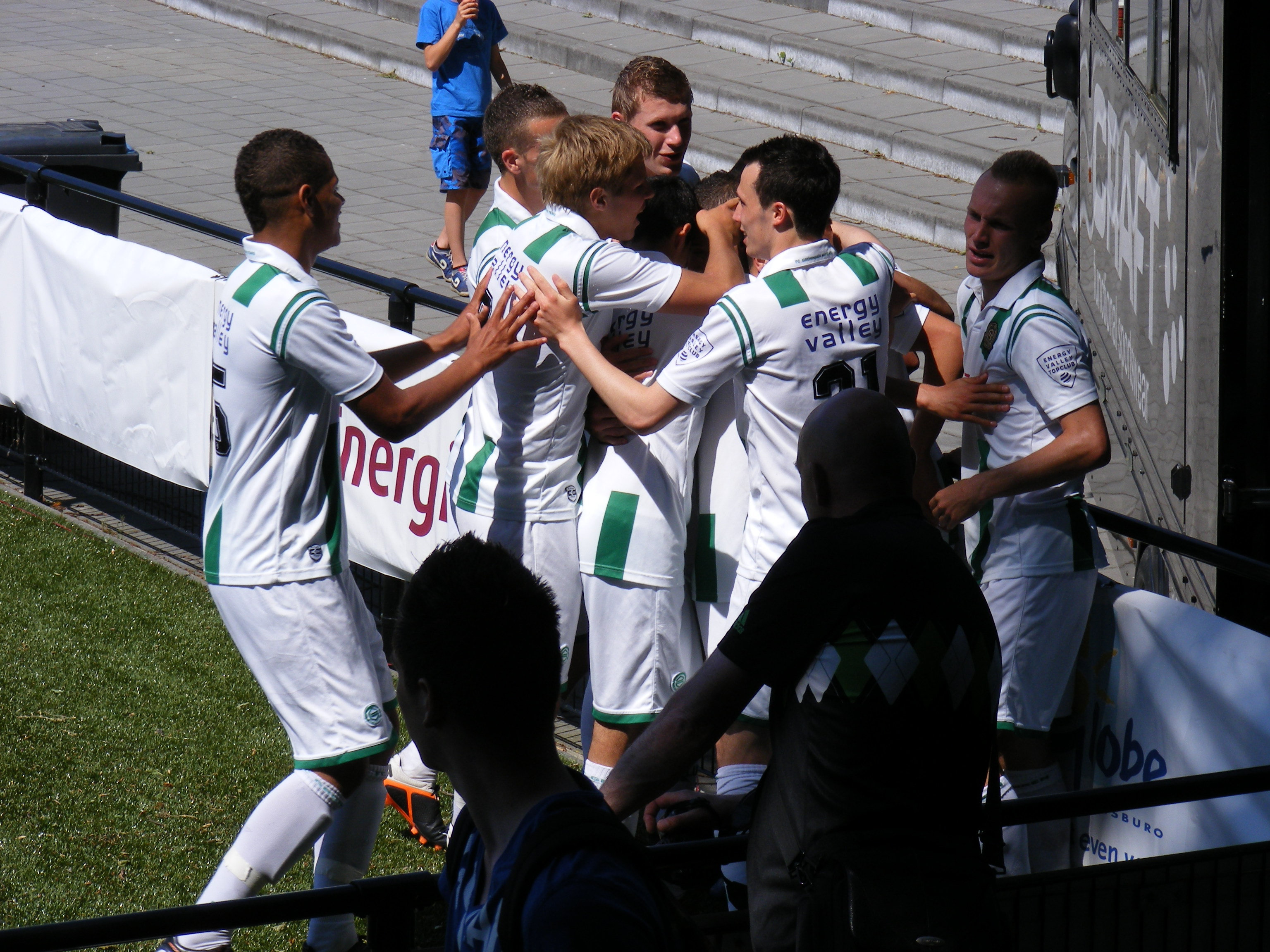 FC Groningen viert de 1-0 tegen Udines, foto Andor Heij
