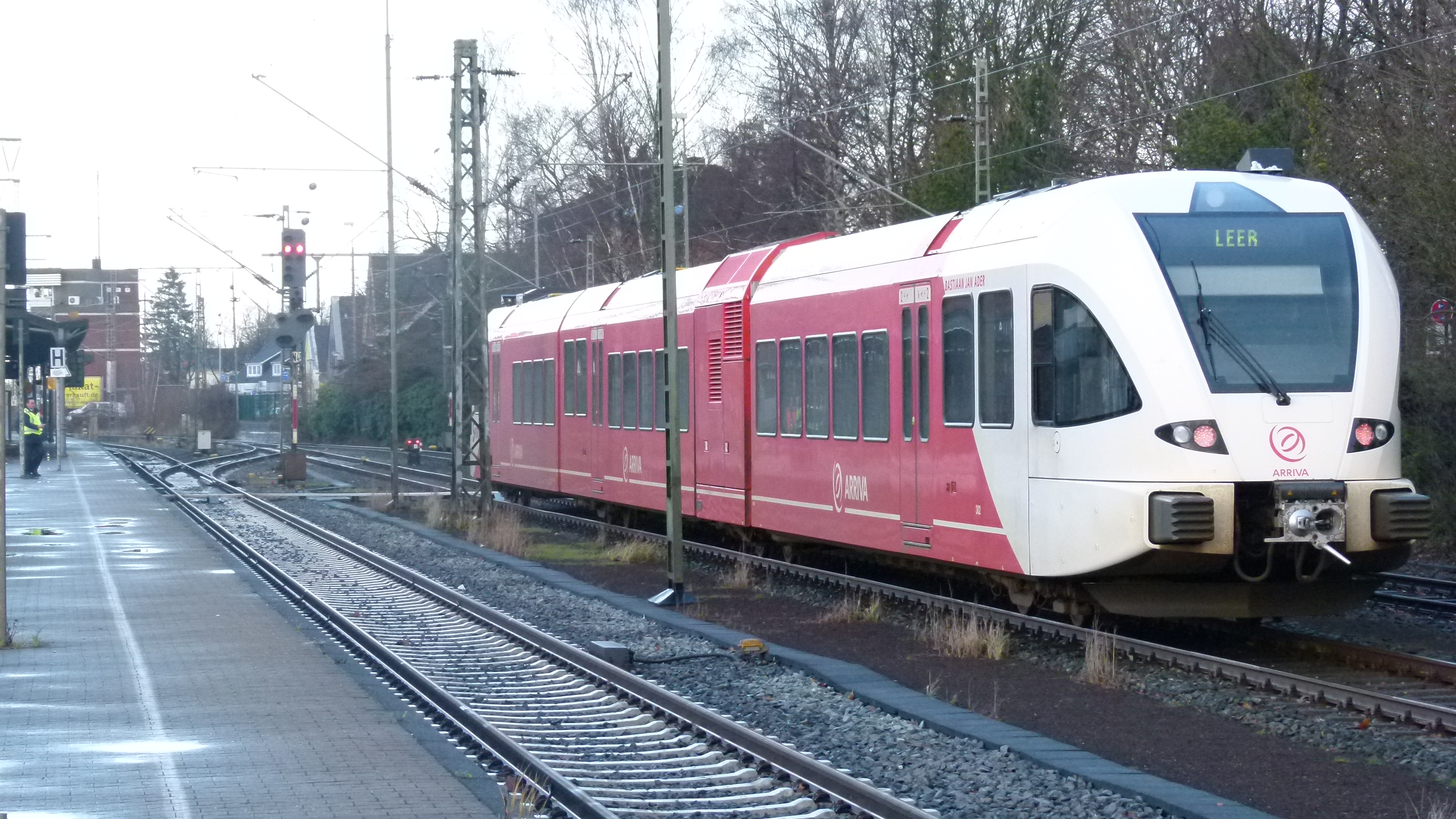 Een Arriva-trein aan het rangeren op het station in Leer. Foto: Sebastiaan Scheffer