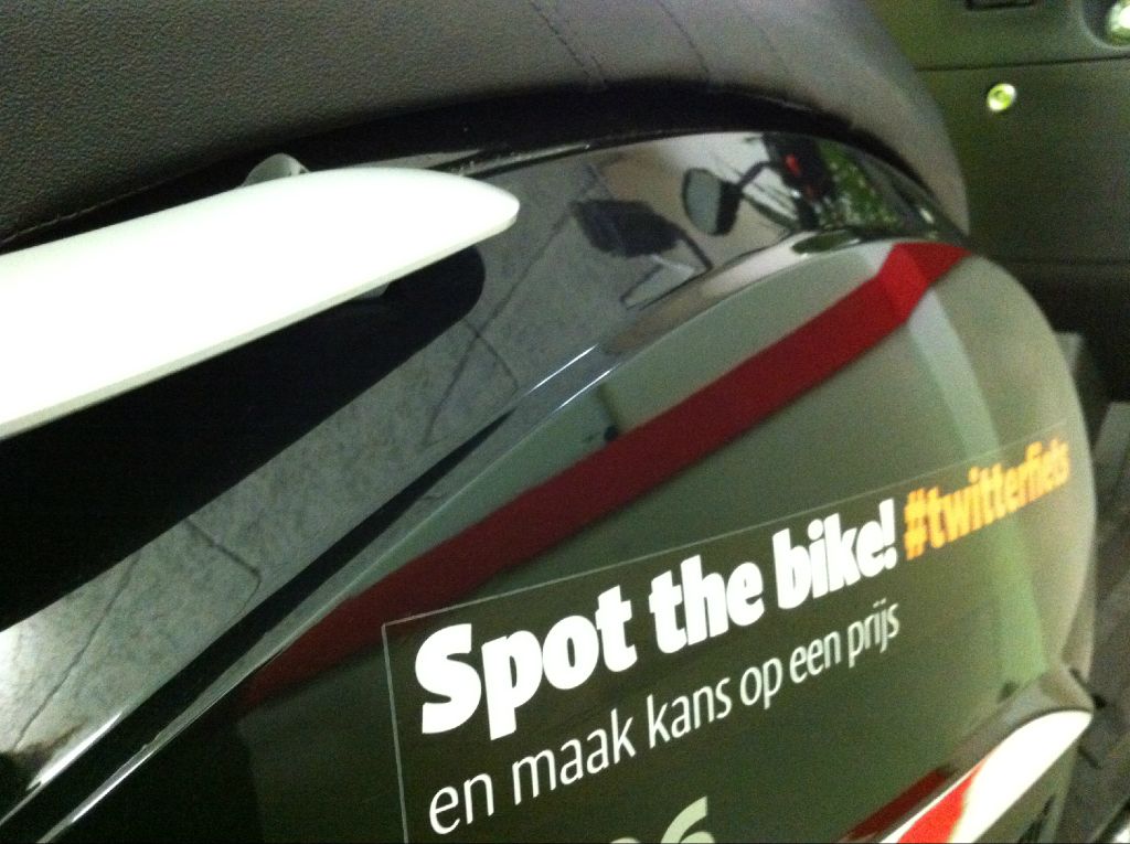 Mensen die de twitterfiets op straat tegenkomen en daar een foto van maken, maken kans op een prijs. Via #twitterfiets kun je op Twitter volgen waar de stalen rossen zich begeven.