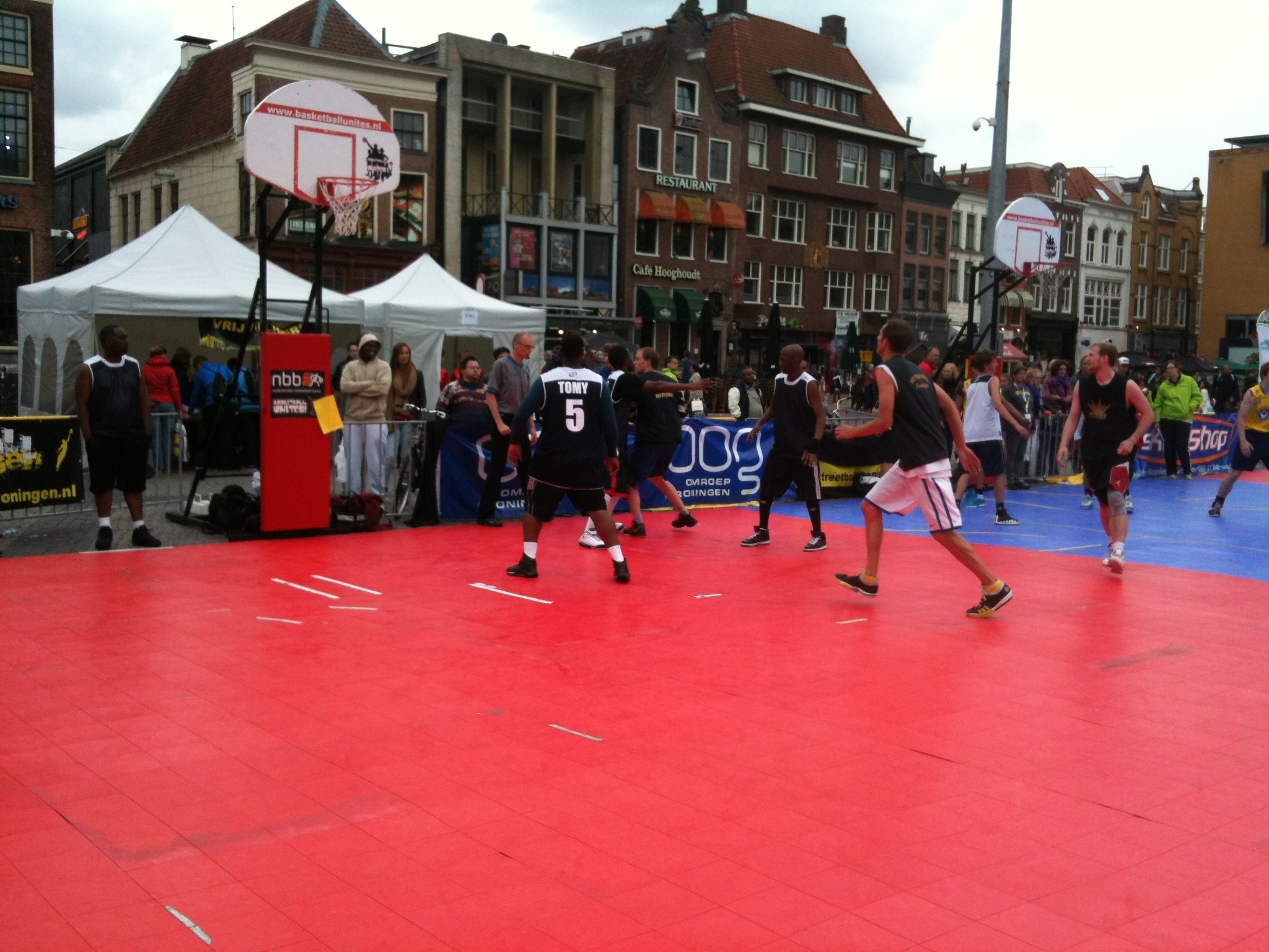 De 18e editie van Streetball Groningen was een succes. Het toernooi op de Grote Markt was op dezelfde dag als koopzondag, waardoor er veel publiek was voor de basketballers op de Grote Markt.