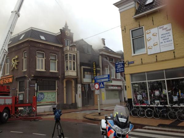 De brandweer is met groot materieel uitgerukt, waaronder een hoogwerker. Daarmee kan de brand van boven bestreden worden. Omdat het om oude panden gaat, die dicht op elkaar staan, is het moeilijk voor de brandweer om bij de brand te komen.
