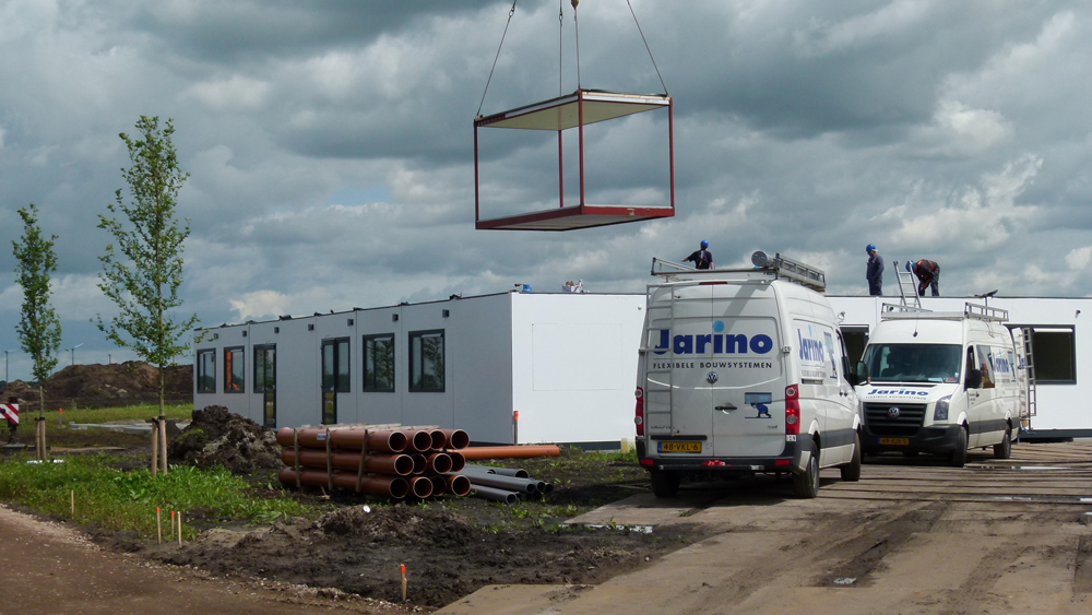 Bijzonder is de manier waarop de school gebouwd wordt. “De school wordt geleverd in zogenaamde bouwpakketten”, vertelt commercieel-directeur Diederik Kwant van de Jarino Groep uit het Assen. “De onderdelen van de school zijn in onze fabriek al helemaal in elkaar gezet en hier in in Groningen schuiven we de onderdelen in elkaar.” Kwant is positief over de vorderingen. “Vanmorgen (maandagochtend, red.) zijn we begonnen en zoals het nu lijkt staat dinsdagavond alles op zijn plaats. Daarna begint de afwerking.”