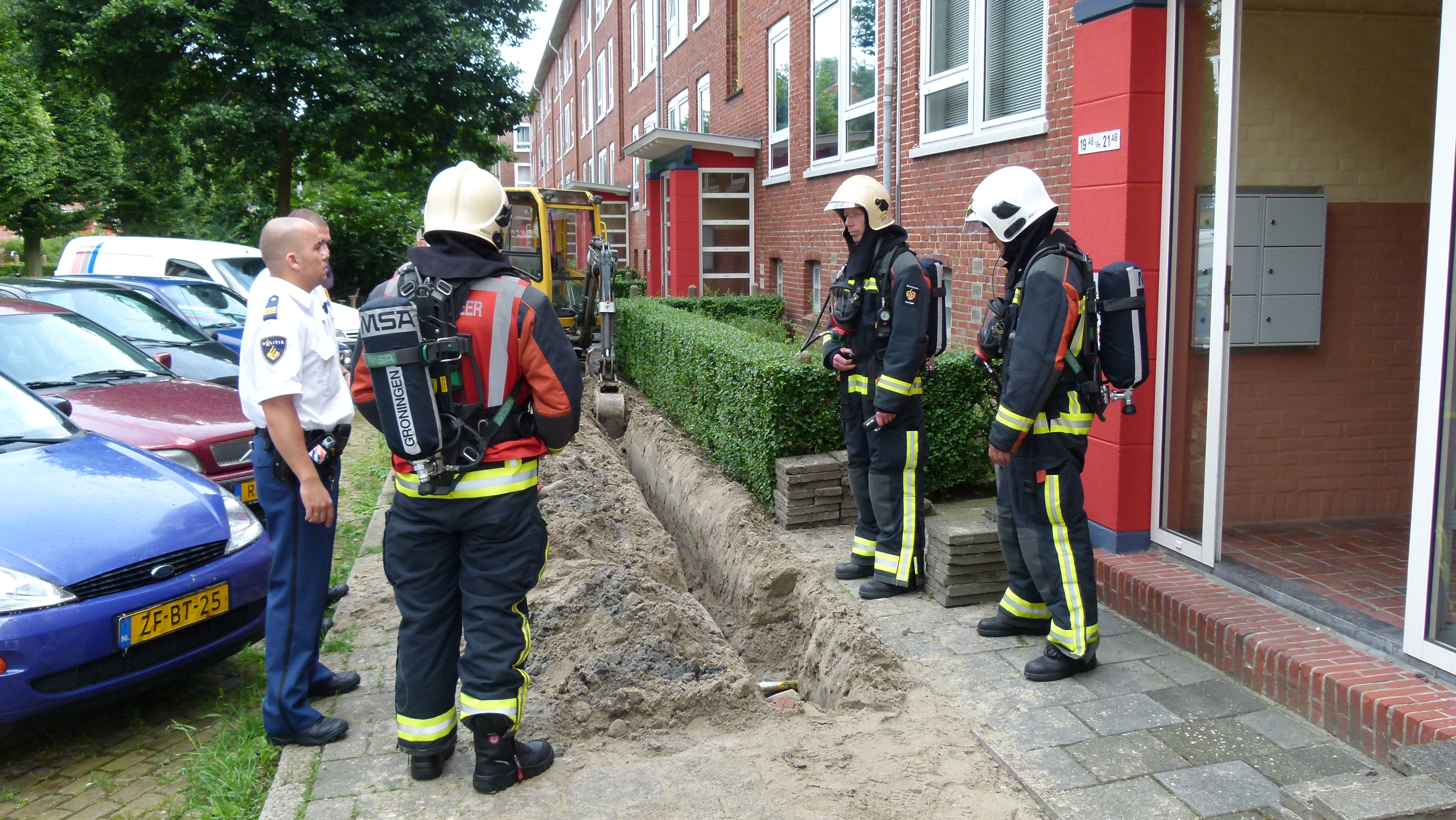 De melding kwam rond 11.30 uur binnen op de meldkamer van de Hulpverleningsdiensten. In de Soerabajastraat en omgeving wordt aan de trottoirs gewerkt. Hierbij wordt onder andere gebruik gemaakt van een kraantje. Bij graafwerkzaamheden werd een gasleiding geraakt waardoor het gas naar buiten spoot. De medewerkers waren snel van geest en plakten de leiding met tape af.