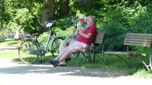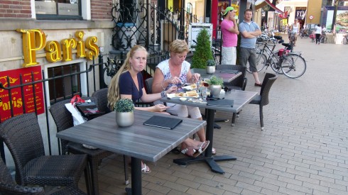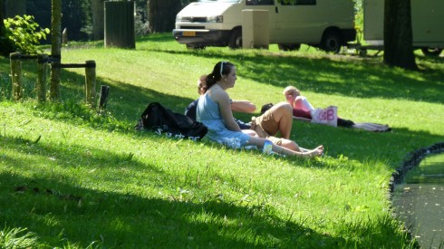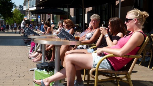 In het Noorderplantsoen was het rond het middaguur nog betrekkelijk rustig. Stadjers in zomerse kleding verzamelden zich aan de waterkant om enige verkoeling te zoeken. In de binnenstad was het drukker. Met ijsco’s in de hand bood het bezoekerscentrum van de VVV populaire zitplaatsen in de zomerzon. Maar ook op de terrasjes aan de Grote Markt was het druk. Behalve de gebruikelijke lunches vloeiden ook de eerste biertjes van de tap om de ergste dorst maar te lessen.