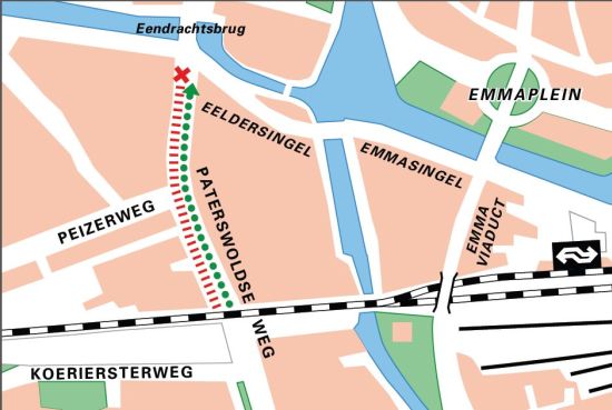 Het fietspad aan de westkant van de Petrus Campersingel is sinds afgelopen woensdag afgesloten. Dat…
