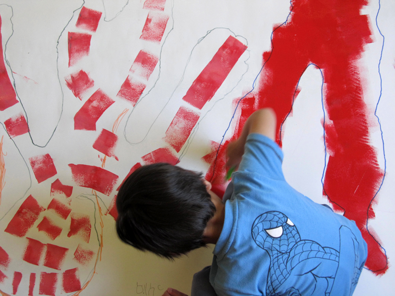 Op de tekening kunnen ze laten zien wie ze zijn en wat ze leuk vinden. Er zijn kunstenaars aanwezig om te helpen.