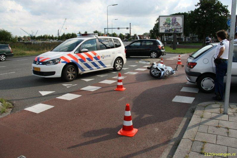 Een 40-jarige snorfietsster uit Groningen is dinsdagmiddag gewond geraakt bij een aanrijding met een auto bij de Oostersluis. De vrouw is naar het ziekenhuis gebracht.