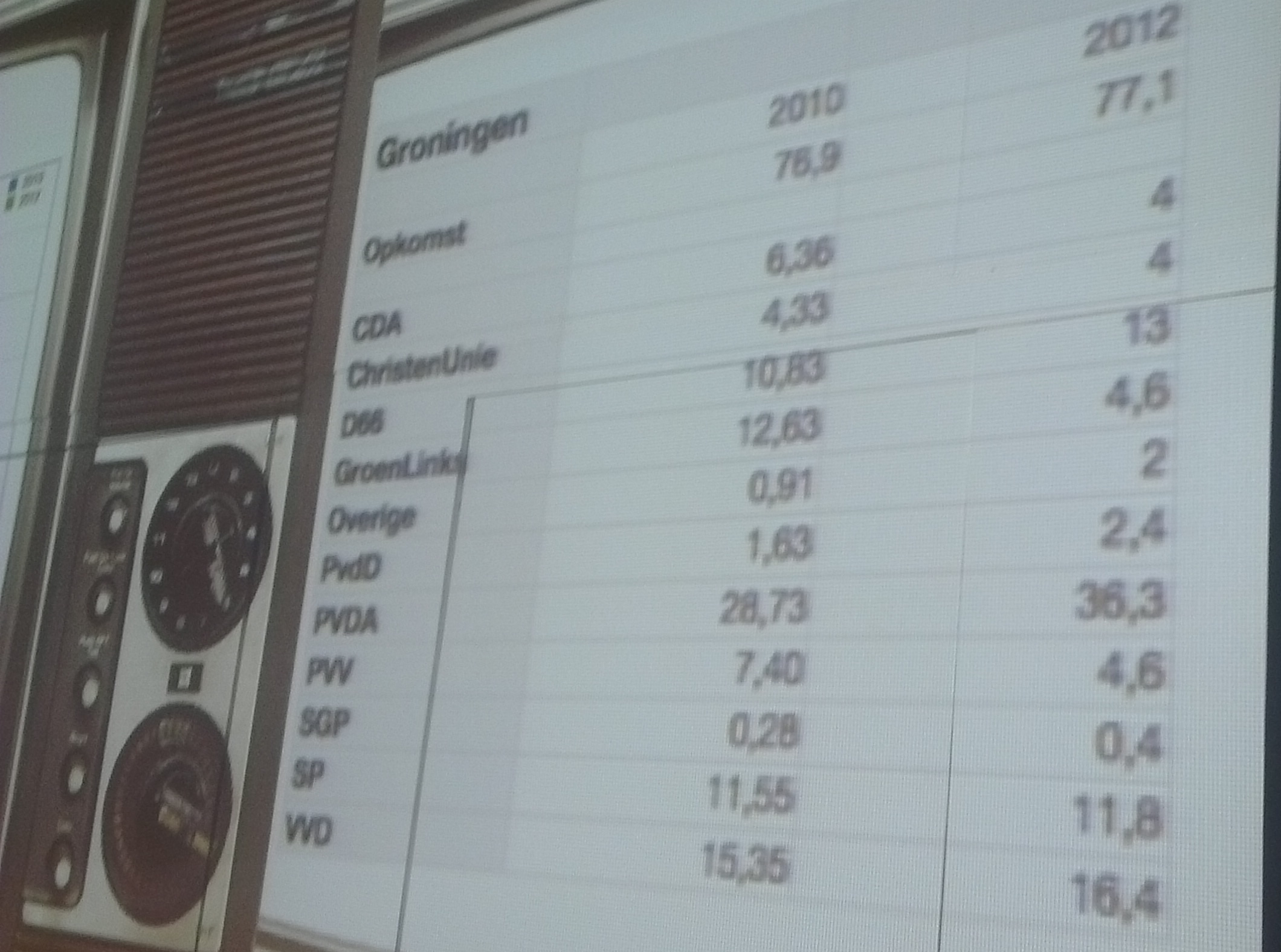 GroenLinks kreeg een forse klap. De partij verloor acht procent en hield 4,6 procent over. Het CDA leverde 2,3 procent in en kwam uit op vier procent. Het CDA werd daarmee net zo groot als de ChristenUnie dat 0,3 procent inleverde. Ook de PVV verloor. Van 7,4 naar 4,6 procent.