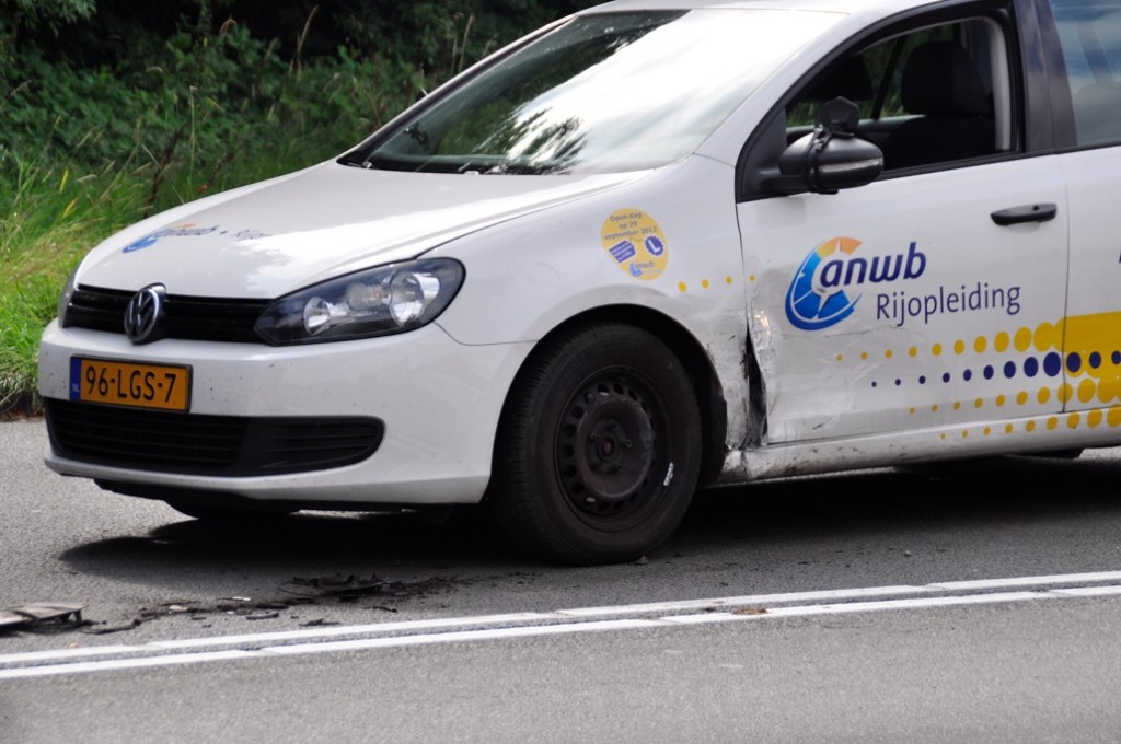 Een lesauto van de ANWB is maandagmiddag op de kruising van de Rijksweg met de Pop Dijkemaweg in Oosterhogebrug aangereden. De veroorzaker van het ongeval is mogelijk onwel geworden achter het stuur.