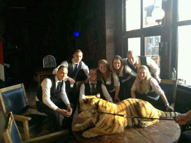 Het speciale bezoek werd door een circus naar binnen gebracht en zo middenin de kroeg op tafel neer gezet. Nadat de tijger een halfuur bewonderd is, is hij weer opgehaald door het circus.