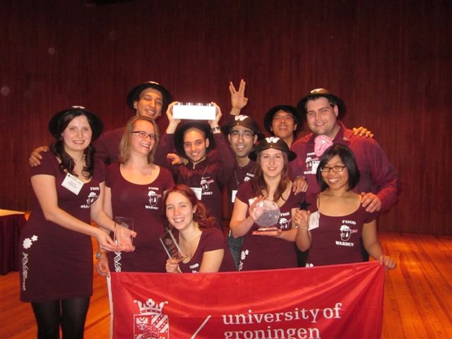 De elf studenten van de Rijksuniversiteit Groningen die vorige week de internationale iGEM-competitie in de Verenigde Staten wonnen, kwamen maandag op bezoek bij Burgemeester Rehwinkel.