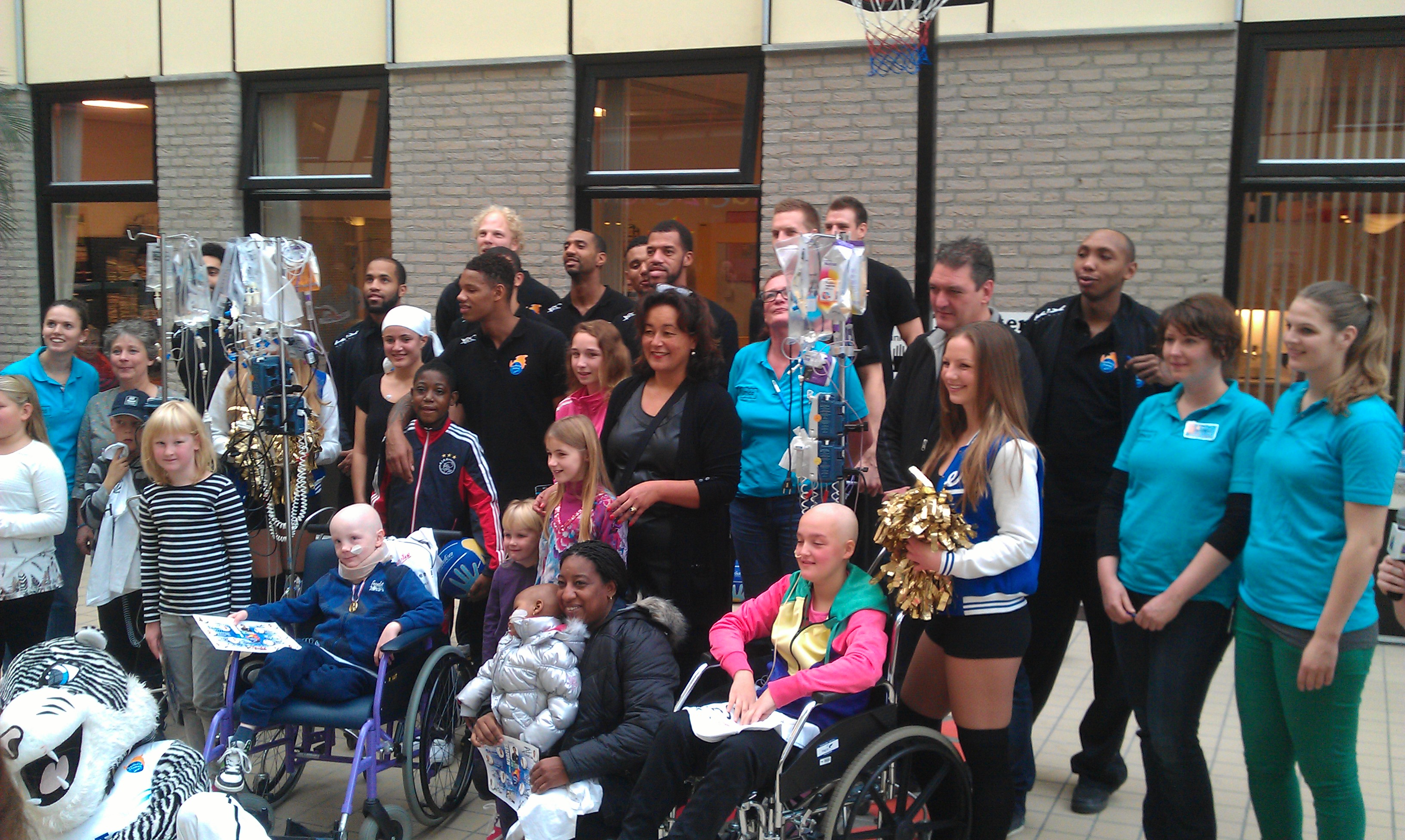 De jeugdige patiënten van het Beatrix Kinderziekenhuis in het UMCG kregen donderdagmorgen bezoek van de basketballers van de GasTerra Flames. Dit op initiatief van de basketbalclub, het ziekenhuis en de Groningen City Club.