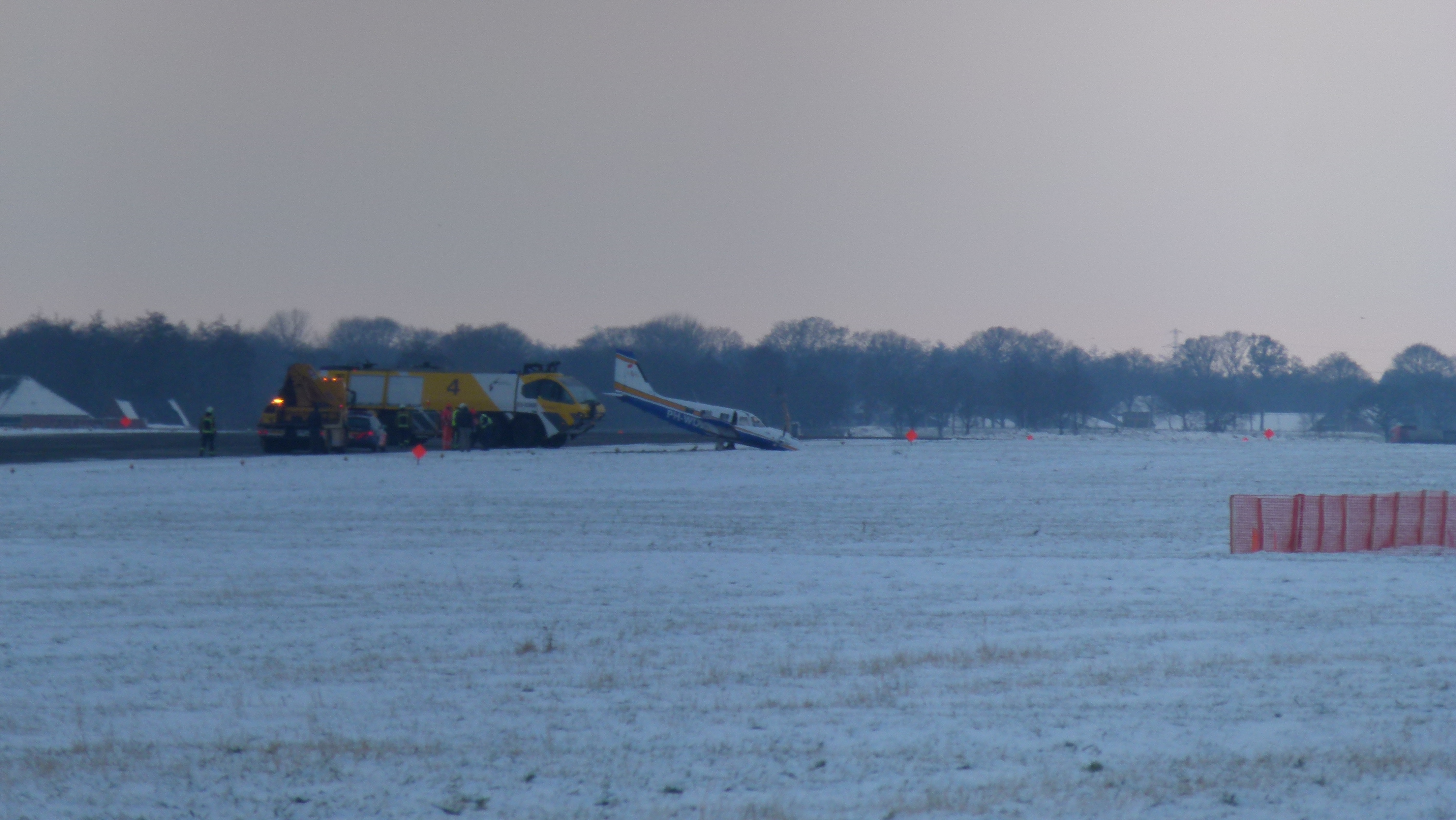 De hulpverleningsdiensten rukten met groot materiaal uit. Het vliegveld is voorlopig afgesloten voor het vliegverkeer.