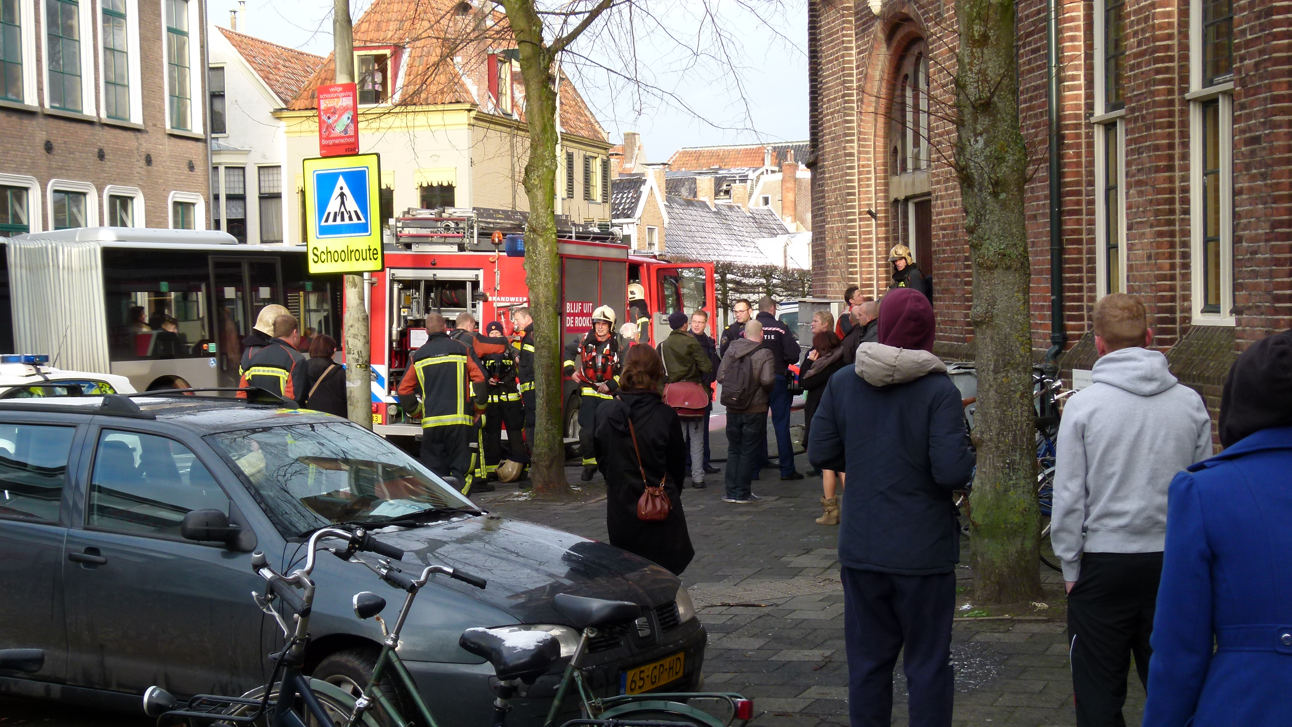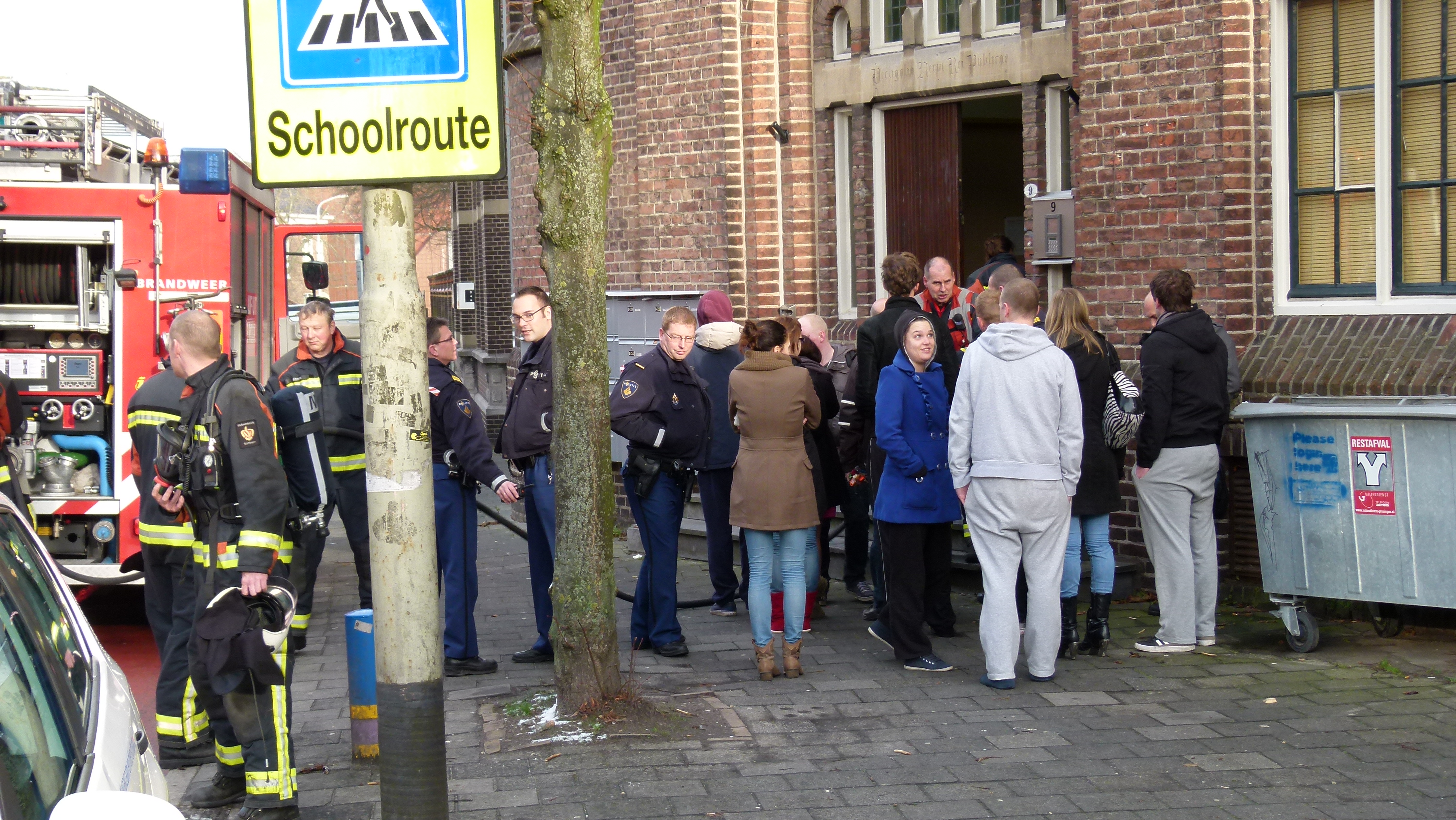 De melding van de brand kwam om 11.30 uur binnen bij de brandweer. “We zagen dat er rook in de gangen stond”, vertelt één van de bewoners. “Omdat toen ook het brandalarm ging zijn we met z’n allen naar buiten gegaan.” Omdat het om een pand in de binnenstad ging rukte de brandweer met twee blusvoertuigen en een hoogwerker uit.