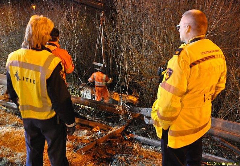 Het ongeluk gebeurde rond 21.30 uur ter hoogte van de Reitdiephaven. Omdat er mogelijk sprake was van een beknelling werd een bluswagen en een hulpverleningsvoertuig ter plaatse gestuurd. Bij aankomst bleek een personenauto vanuit de richting Bedumerweg over de middenberm te zijn geschoten, dwars door de vangrail te zijn gegleden en vijf meter lager tot stilstand te zijn gekomen.