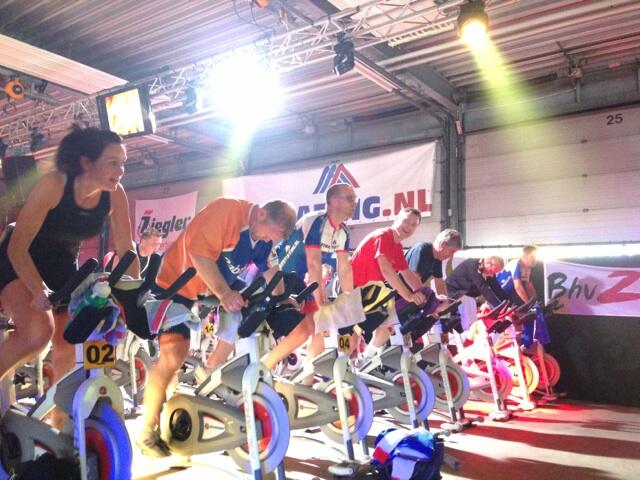 De eerste fietsers in actie op de spinningmarathon. Foto: Bianca Habing