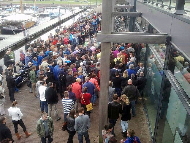 De aanbiedingen waren niet beter dan een normale uitverkoop bij Waterborg, alleen op de wintercollectie kon je een aardige 60% korting krijgen, op de nieuwe collectie 'slechts' 30%, net als op watersport. Aangezien Waterborg ongeveer 30% te duur was, is je voordeel nihil. Maar wel massaal graaien en in de rij staan natuurlijk. Einde donderdag was het rustig en toen even wezen kijken. Een rij tot voorbij het midden van de winkel, Ach, zo is de mens nou eenmaal