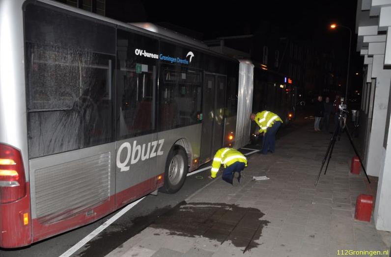 Het ongeluk gebeurde rond 21.00 uur. Een ouder echtpaar stapte uit een lijnbus van vervoersbedrijf Qbuzz. Bij het uitstappen bleef de tas van de vrouw achter een deur hangen. Zowel de man als de vrouw kwamen vervolgens ten val, waarna de bus over de benen van de vrouw reed. De 87-jarige man bleef ongedeerd.