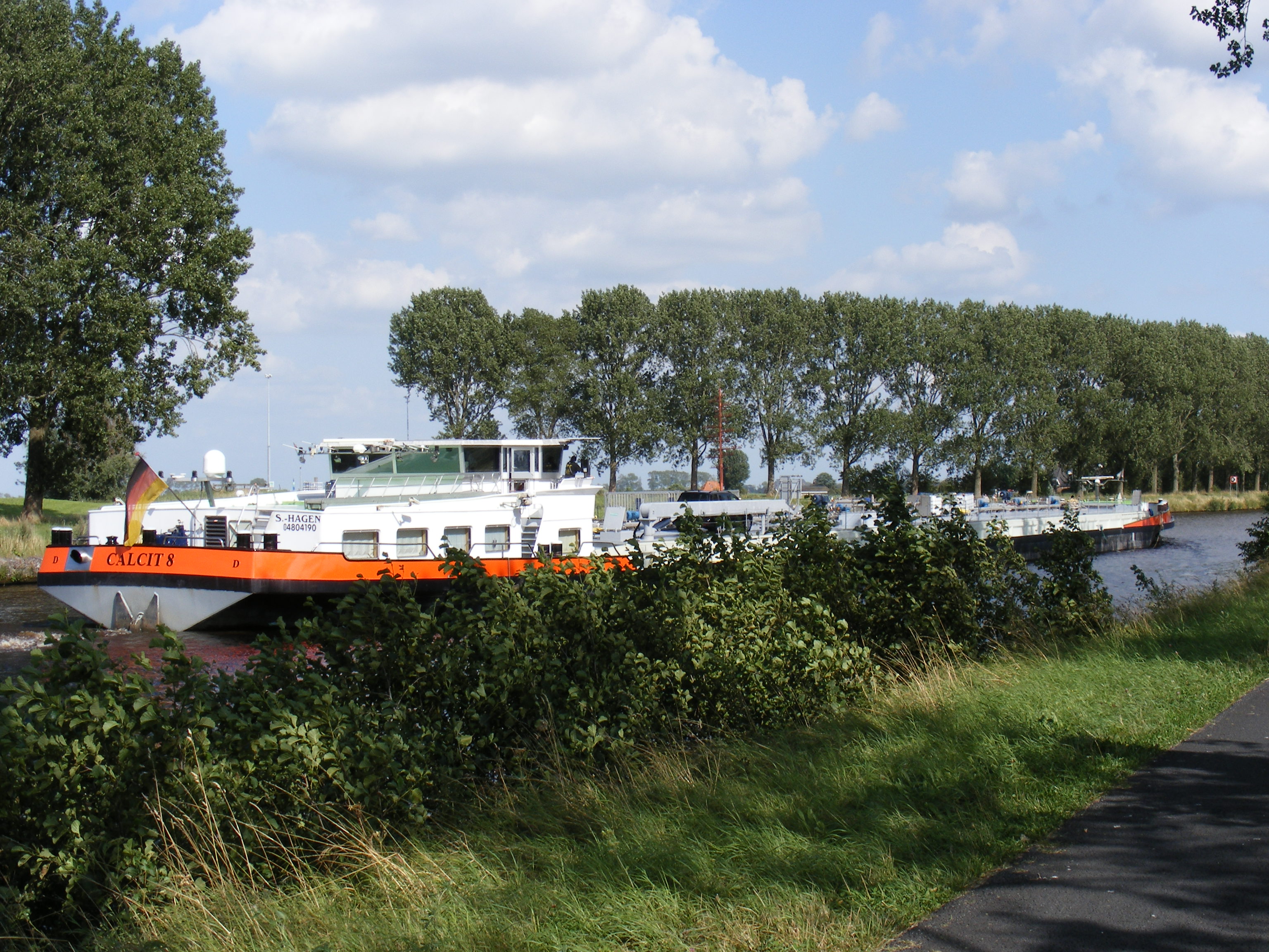 Schip in Van Starkenborghkanaal bij Dorkwerd, foto Andor Heij
