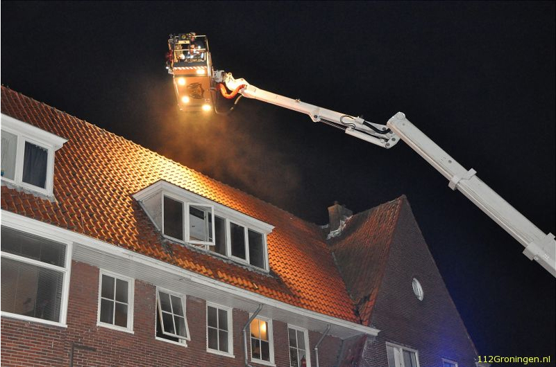 Twee studenten konden zich in de nacht van vrijdag op zaterdag via het dak redden, nadat er in hun woning aan het Hoornsediep brand was uitgebroken. De brandweer kon hen met een hoogwerker naar beneden halen.