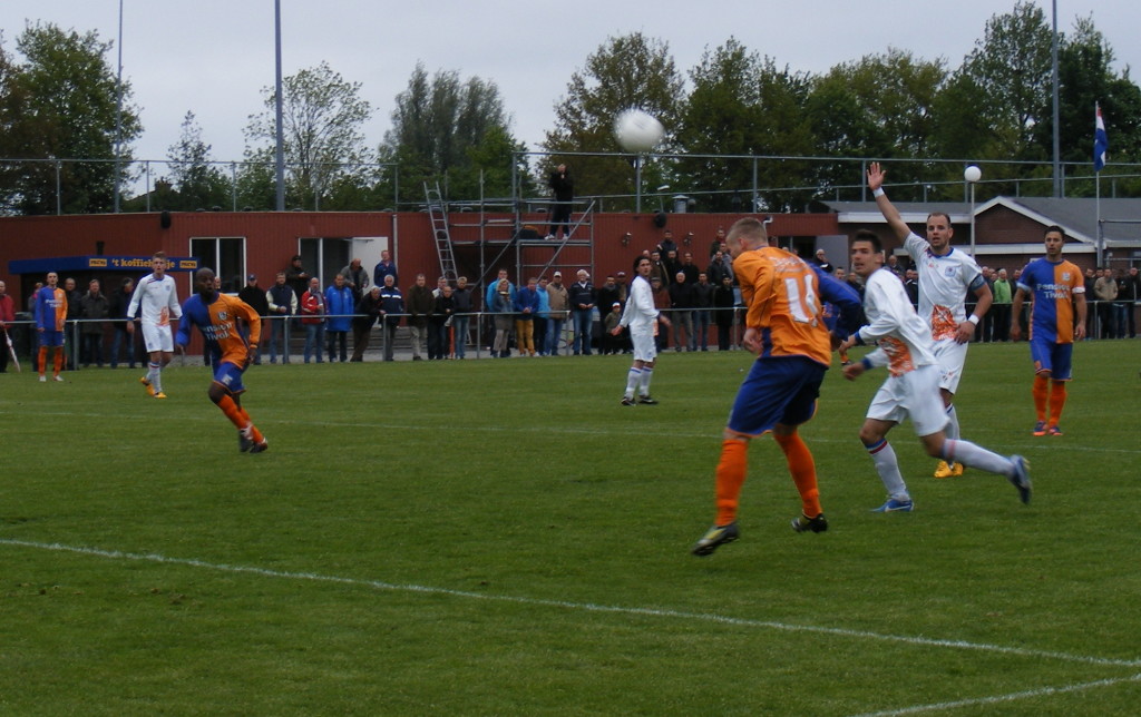 Jordi Striedelmeijer van PKC'83 kopt voorlangs, foto Andor Heij