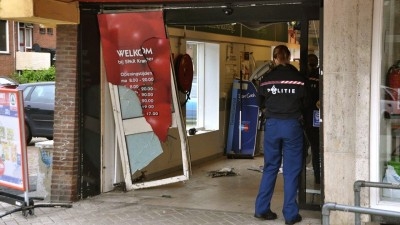 Getuigen zagen zondagmorgen rond half zes een kleine zwarte auto de pui rammen van een filiaal van De Spar. Uit beelden van een bewakingscamera blijkt dat de pui vijfmaal geramd werd. Drie mannen gingen vervolgens de winkel binnen. Kort daarop vertrokken ze weer, in de bewuste zwarte auto. Daarin bevond zich ook een grote lichtgekleurde hond.