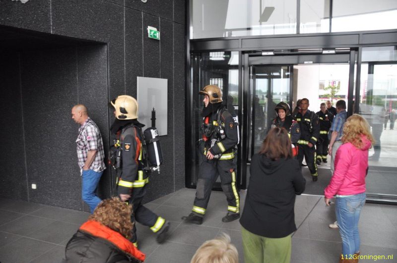 De brandweer stapt de Tasmantoren binnen, foto Martin Nuver www.112groningen.nl