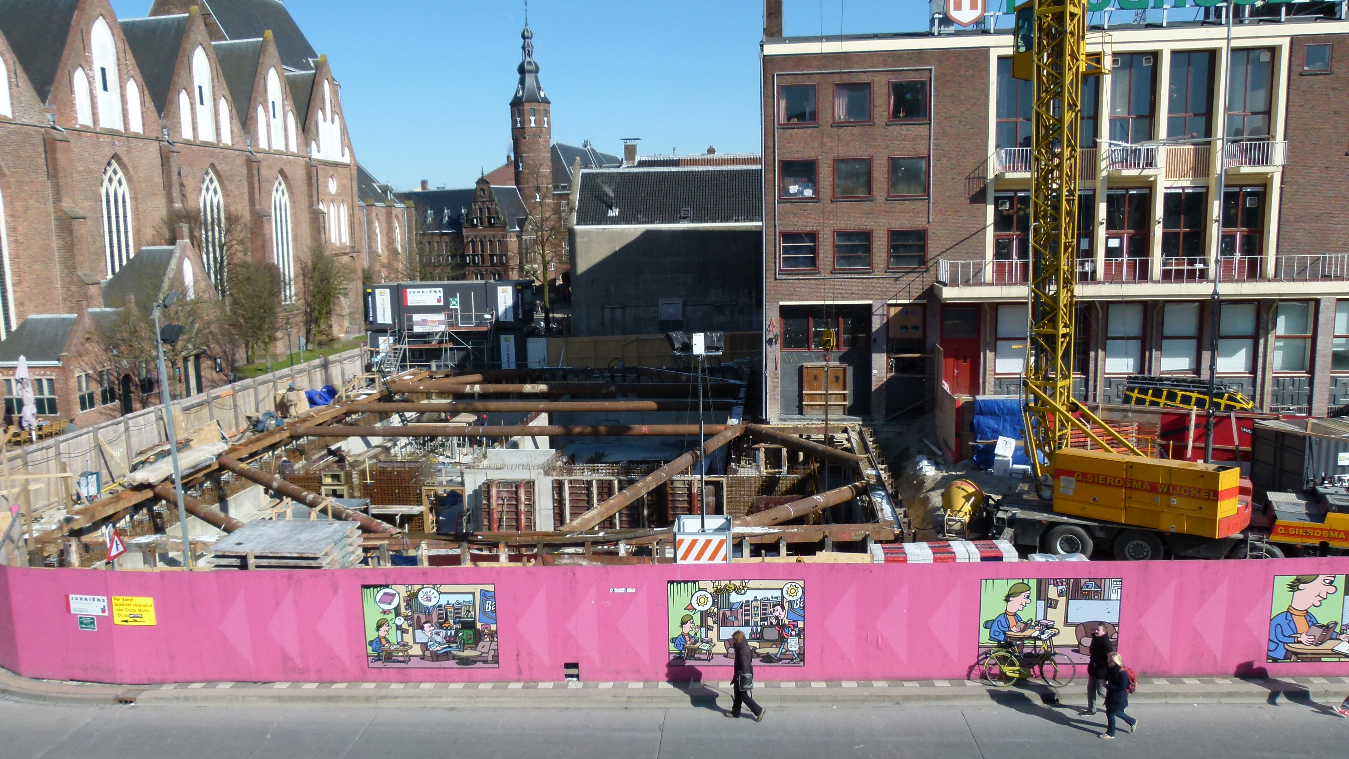 De werkzaamheden aan de Grote Markt oostzijde zijn in volle gang. De bouw van het nieuwe onderkomen van studentensociëteit Vindicat vordert. De Naberpassage is gesloopt. En daarachter bereiden de bouwers de komst van de parkeergarage voor. Als de parkeergarage klaar is, komt daar bovenop het Groninger Forum.