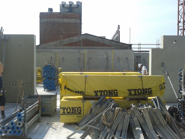 Doordat er gebruik wordt gemaakt van voorgefabriceerd materiaal, kreeg het gebouw afgelopen weken snel vorm. Het materiaal wordt in kant en klare brokken aangeleverd en als lego-steentjes op elkaar geplaatst. Deze week is ook al begonnen met het afwerken van de kelder van het pand.