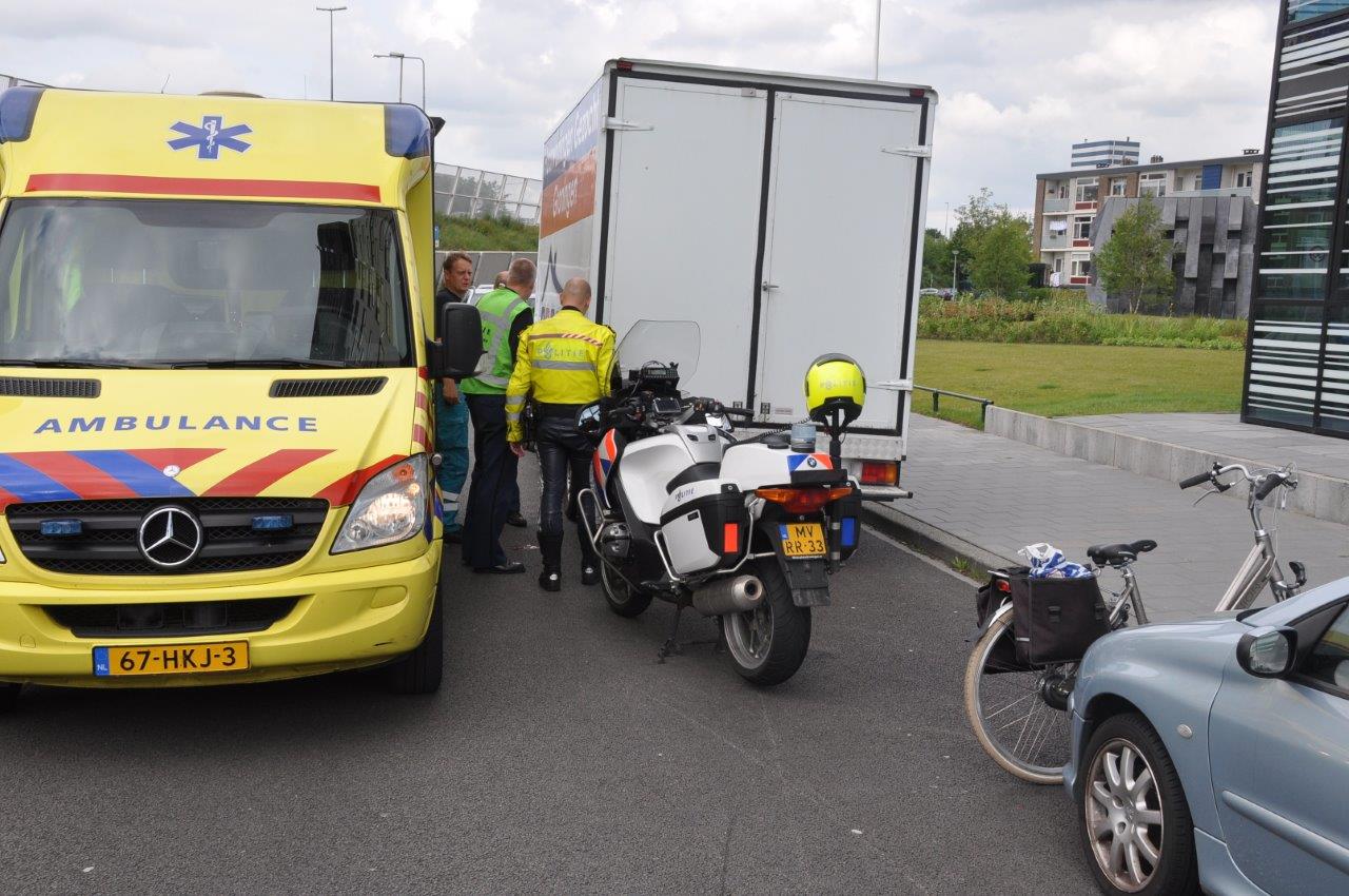 De vrouw, die van de Laan van de Vrede kwam, reed met haar elektrische fiets tegen een stilstaande vrachtwagen aan die daar als reclameobject staat. Hoe het ongeluk kon gebeuren is nog onbekend.