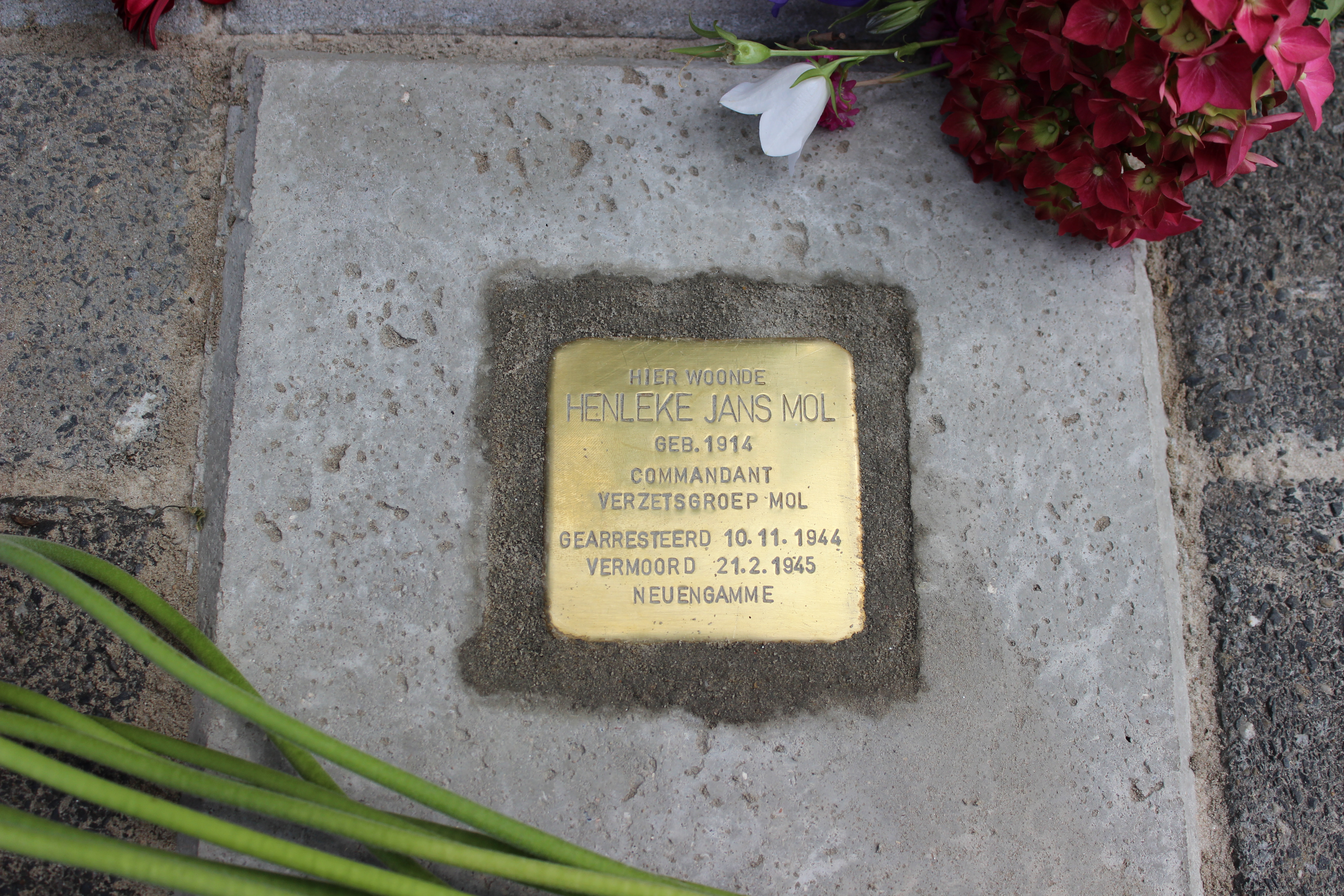 In de stad werd er één geplaatst. Dat gebeurde aan het Van Brakelplein in de Zeeheldenbuurt. Daar woonde verzetsstrijder Henleke Jans Mol die in 1945 werd vermoord.