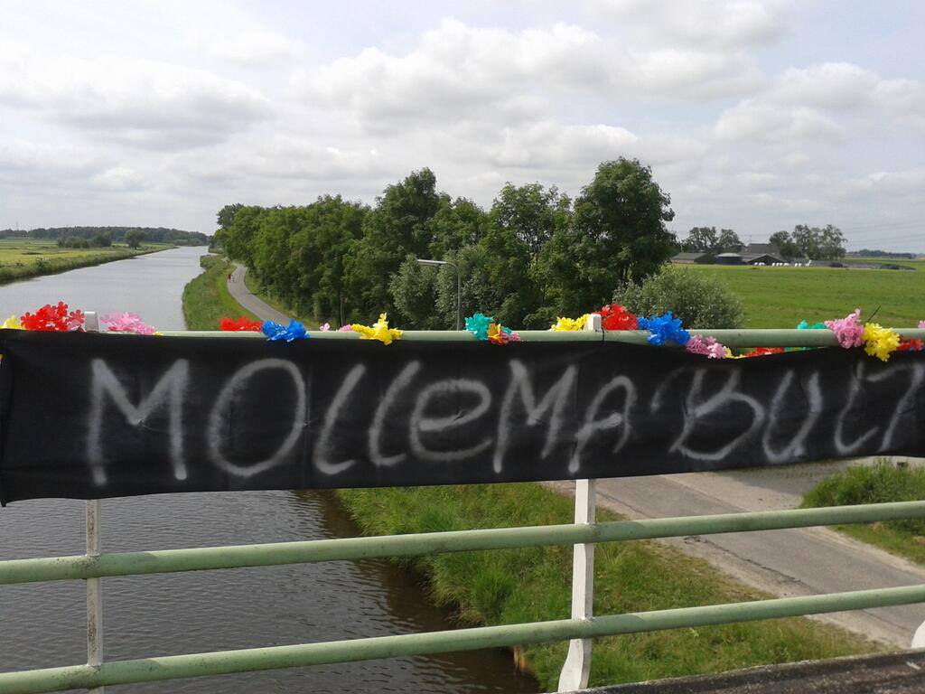 De doeken waren opgehangen door wielerliefhebbers uit Zuidhorn, het dorp waar Bauke Mollema is opgegroeid, omdat Mollema het erg goed doet in de Tour de France. De spandoeken trokken veel aandacht. Zo kwam er woensdag een TV ploeg van RTL langs.