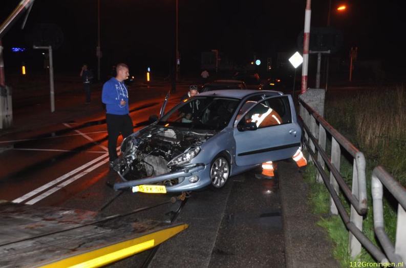 Bij een ongeluk bij de Oostersluis op het Damsterdiep is vrijdagavond een auto zwaar beschadigd geraakt. De automobilist kwam er zonder kleerscheuren vanaf.