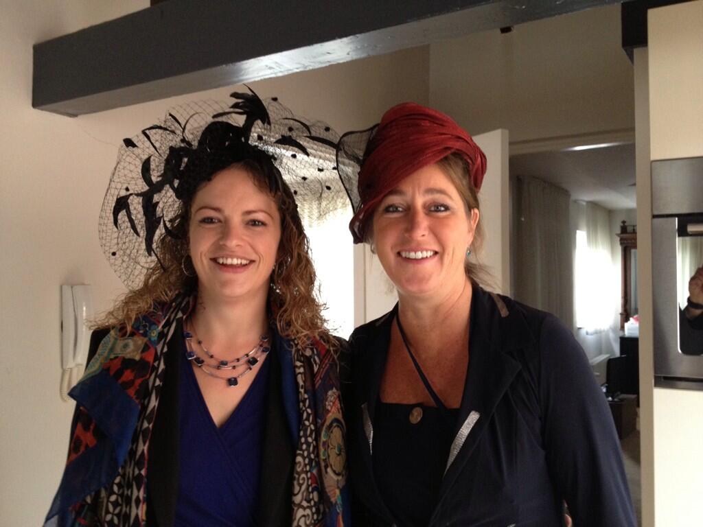 De Boer, rechts op de foto met haar schoonzusje, draagt een hoed van de Groningse ontwerpster Rita Ploeger.