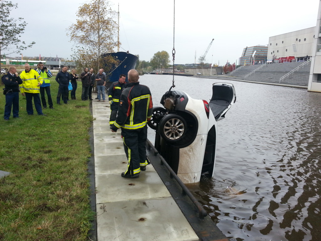De brandweer heeft de auto ondertussen uit het water getakeld.