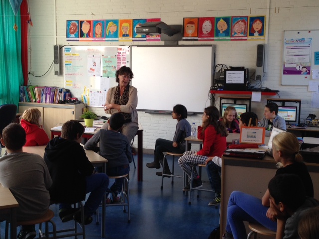 De stad stond donderdag in het teken van de Dag van de Duurzaamheid. Oud-wethouder Elly Pastoor, tegenwoordig voorzitter Noorden Duurzaam, las een verhaal voor over duurzaamheid aan groep 7 en 8 van de Bisschop Bekkersschool.