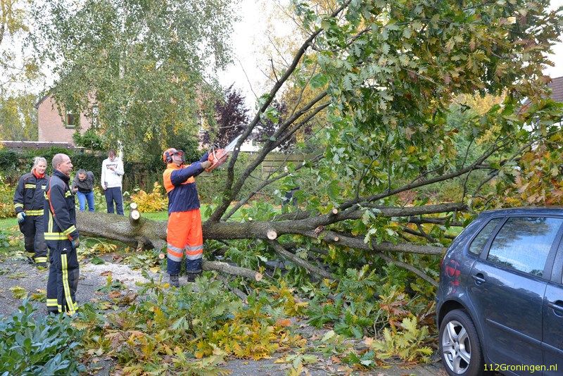De boom kwam op twee auto’s terecht. Een er van liep behoorlijke schade op. Er deden zich geen persoonlijke ongelukken voor.