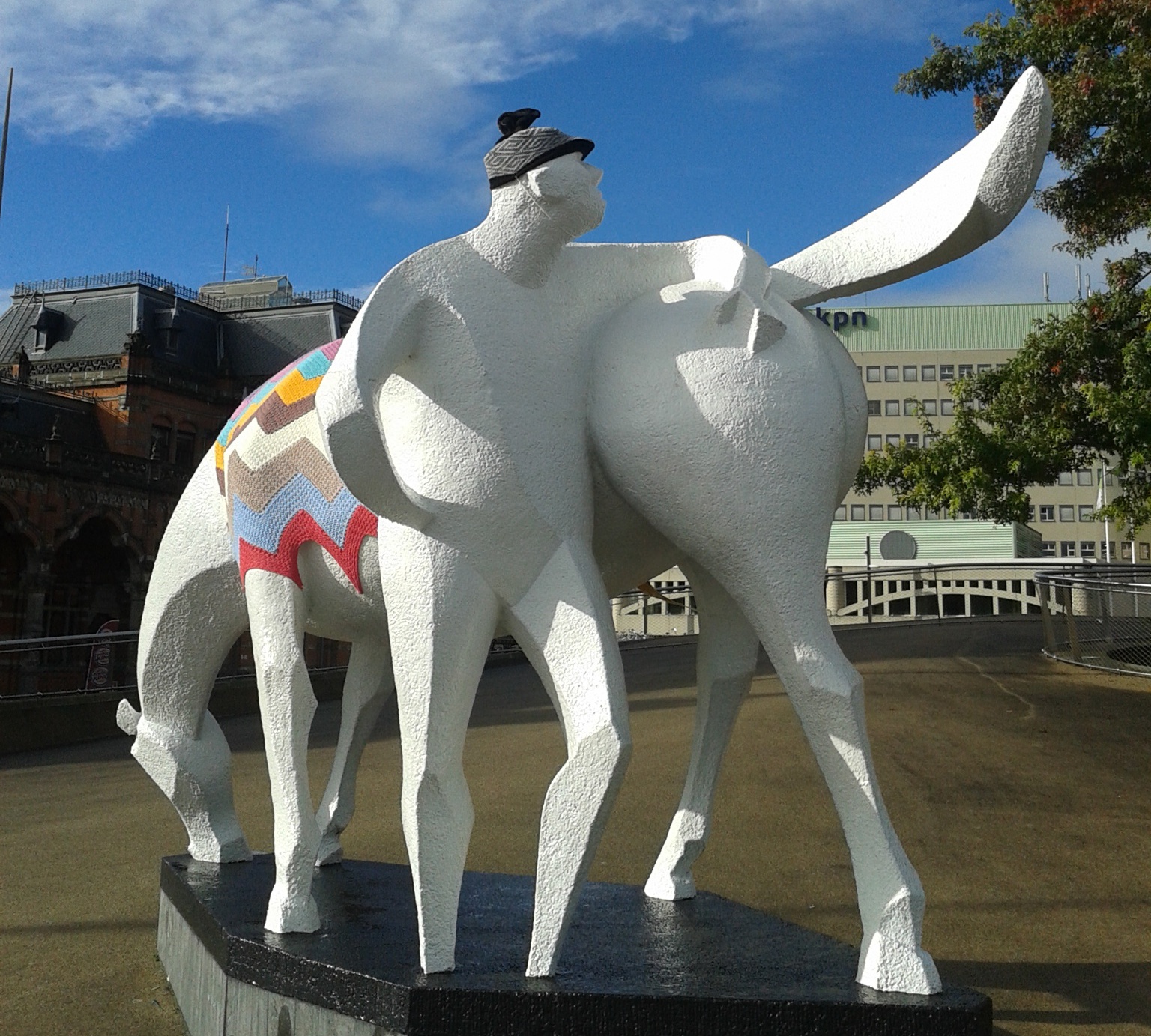 Om de dag te promoten kregen allerlei beelden op de route van het station naar het A Kerkhof een gehaakt of gebreid kledingstuk aan. Maar het Peerd staat dus weer in zijn blote kont.