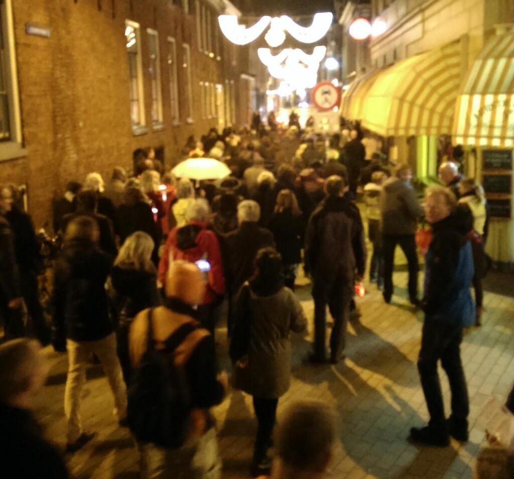 Zo’n 150 mensen hebben maandagavond meegelopen met de Sint Maartenmars door de binnenstad. De mars was een initiatief van gemeenteraadslid Rosita van Gijlswijk van de SP.