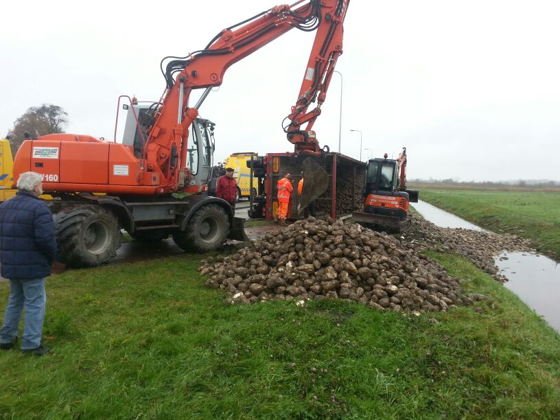 Om de bieten en de wagen te bergen werd de weg lange tijd afgesloten.