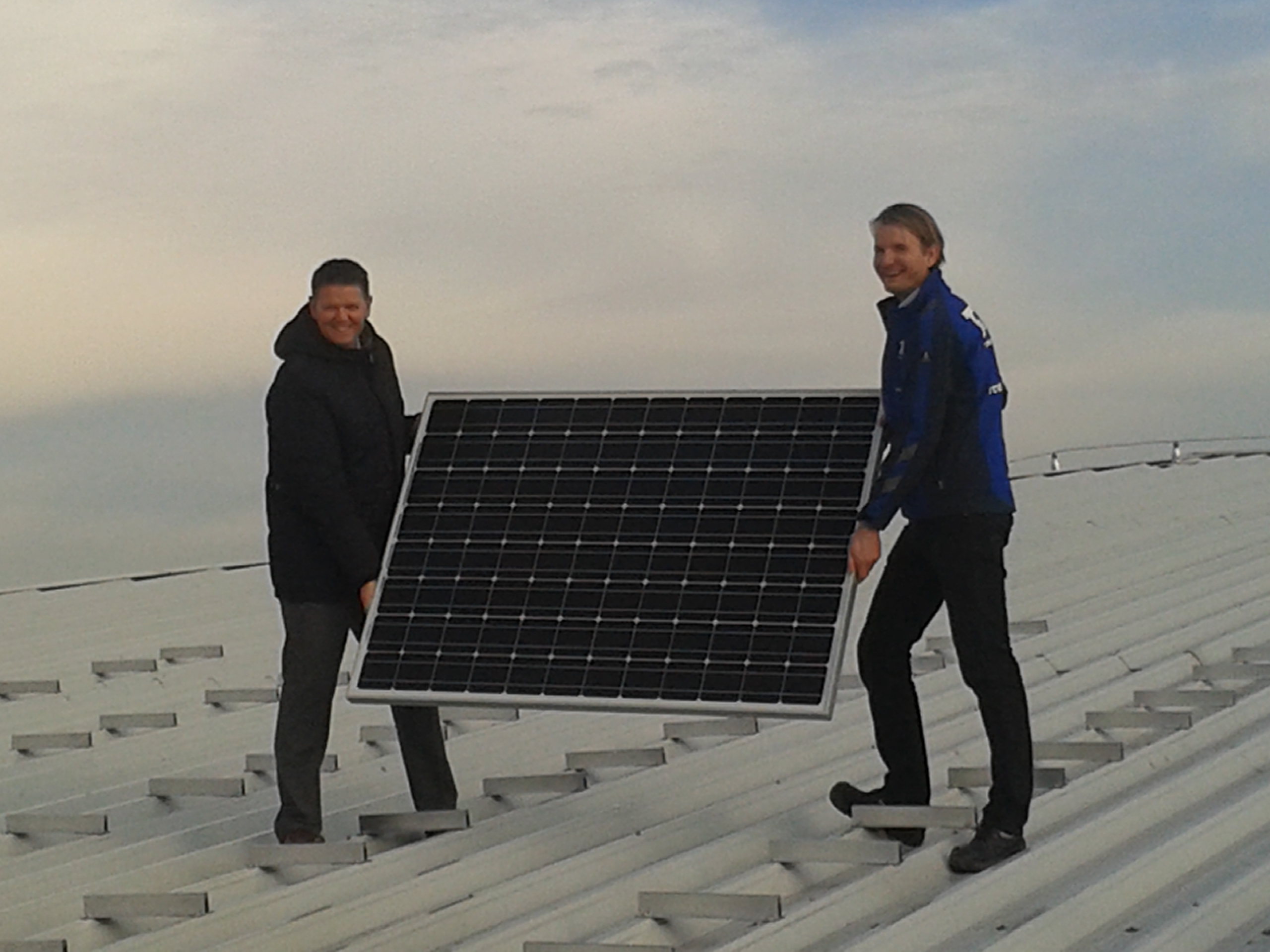 Het eerste zonnepaneel is dinsdagmiddag op het dak van de Euroborg gelegd. FC Groningen wordt daarmee de eerste voetbalclub in Nederland met een zonnecentrale op het dak van haar stadion. Er zullen in totaal ruim 500 zonnepanelen geplaatst worden.