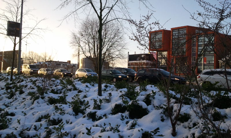 De sneeuw die gisteravond is gevallen heeft vanmorgen in de ochtendspits niet tot veel overlast geleid. Fietsers, wandelaars en automobilisten pasten zich goed aan aan de omstandigheden.