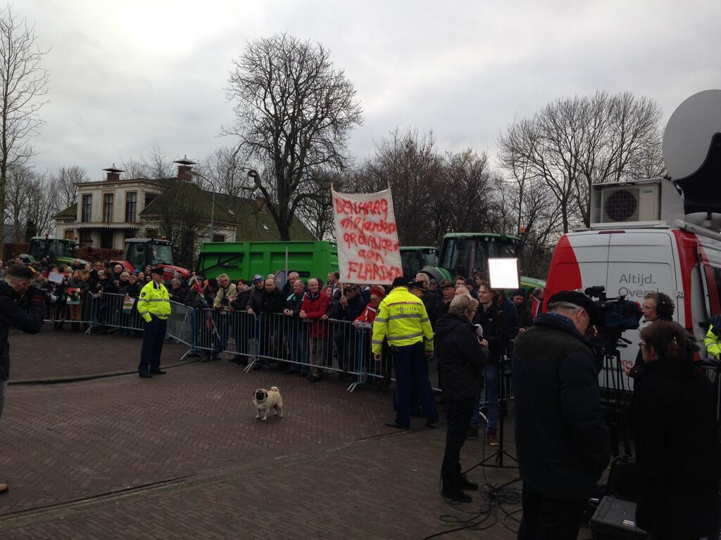 Demonstratie in Loppersum bij komt minister Kamp. Foto twitpic @Naomi_Hoekstra