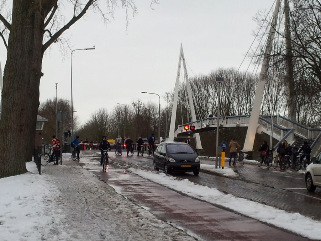 De slagbomen gingen niet meer omhoog. Automobilisten konden er daarom niet langs en moesten keren. Fietsers en voetgangers wisten de brug wel over te steken.