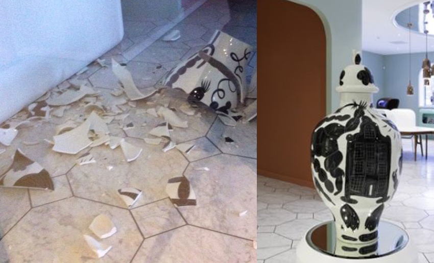 Een vaas van de Spaanse kunstenaar Jaime Hayon is het afgelopen weekend in stukken gebroken nadat een bezoeker er tegenaan was gelopen. Dat gebeurde in het informatiecentrum van het Groninger Museum.
