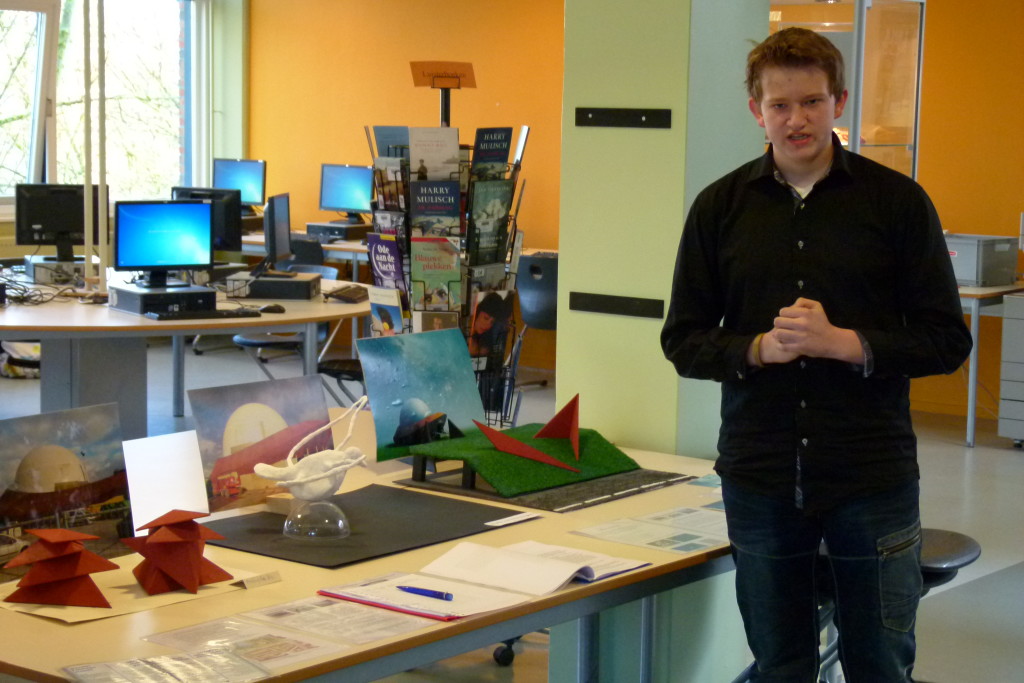 Tevreden is ook de docent Handvaardigheid. “Alle zeven leerlingen zijn stuk voor stuk toppers. Ze hebben ontzettend goed hun best gedaan.” Behalve de maquettes werden er ook folders gepresenteerd met daarin ideeën voor een mogelijke invulling van het Infoversum. Het Infoversum is het 3D fulldome theather dat komende zomer geopend gaat worden. Of de ontwerpen ook daadwerkelijk gebruikt gaan worden is nog onzeker. “Ik ben in ieder geval erg verrast door de hoge kwaliteit, en de ideeën gaan we dan ook zeker meenemen”, laat een woordvoerder van het Infoversum weten.