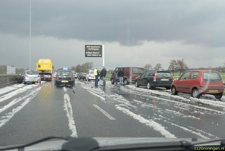 Meerdere auto’s raakten in een slip, en verschillende auto’s kwamen in de berm terecht. Twee automobilisten raakten gewond, waarvan er één met een ambulance naar het ziekenhuis moest worden gebracht. De schade aan verschillende auto’s is groot. De A28 werd vanwege het ongeluk deels afgesloten voor het verkeer.
