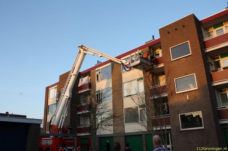 De melding werd door de onfortuinlijke bewoonster rond 17.30 uur gedaan. De vrouw stond op het balkon van haar flatwoning aan de Plutolaan in de wijk Paddepoel toen de deur dichtviel. Haar kat die binnen zat ging op de deurklip staan waardoor de klip vervolgens in het slot viel.